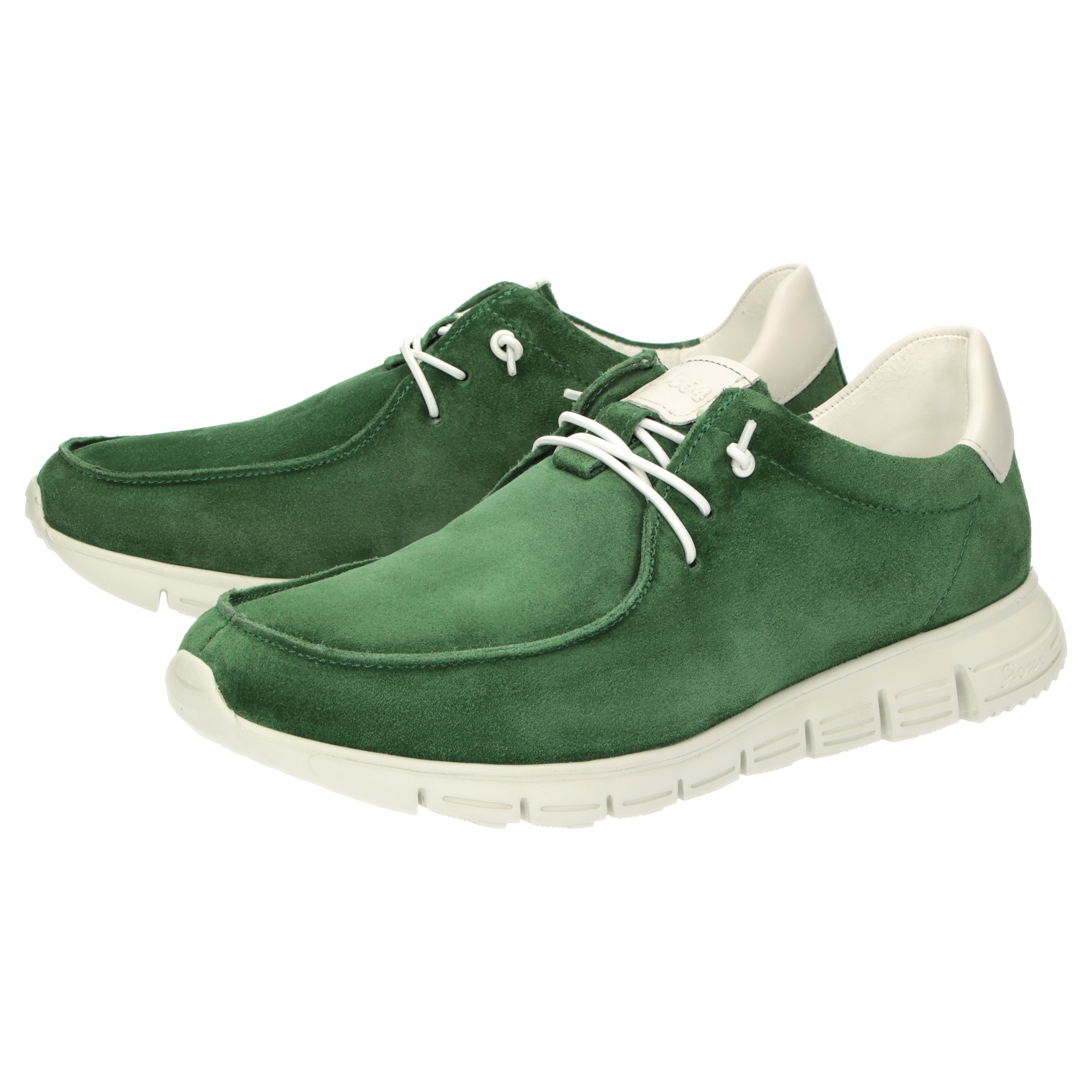 Deze veterschoen is ideaal voor heren die waarde hechten aan stijl en lichtheid. Het fijne kalfssuède geeft de schoen een elegante uitstraling en zorgt voor een prettig draagcomfort. De normale breedte (G-wijdte) garandeert een comfortabele pasvorm - perfect voor wie comfort belangrijk vindt. De flexibele rubberzool biedt bij elke stap een goede grip en samen met het lichte gewicht draagt dit model bijzonder prettig. Aan de binnenkant overtuigt de veterschoen met een praktisch verwisselbaar voetbed, dat eenvoudig kan worden vervangen indien gewenst. De MokRunner combineert de voordelen van een mocassin met het sportieve karakter van een sneaker en is zo de perfecte metgezel voor elke dag en vrije tijd. Een schoen die kwaliteit en modern design moeiteloos samenbrengt