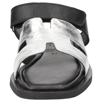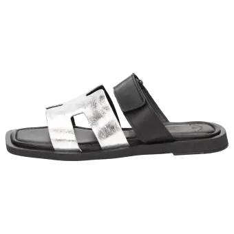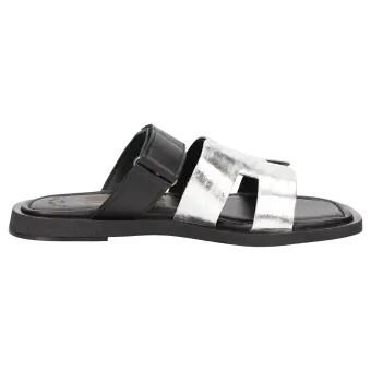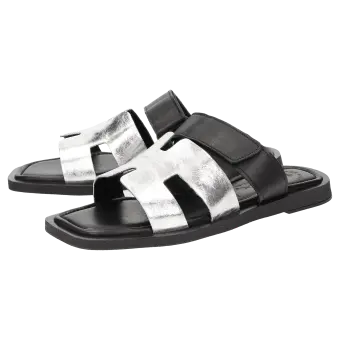 Ein echter Hingucker: Diese Pantolette verbindet elegantes Leder mit edlen Metallic-Elementen. Inspiriert vom urbanen Chic bietet sie durch ihre weich gepolsterte Innensohle und die flexible Sohle ein federleichtes Laufgefühl - ideal für anspruchsvolle Trägerinnen, die Wert auf Komfort und modische Raffinesse legen. Das hochwertige Leder sorgt für ein angenehmes Fußklima - auch an warmen Sommertagen.