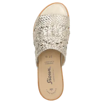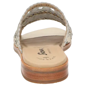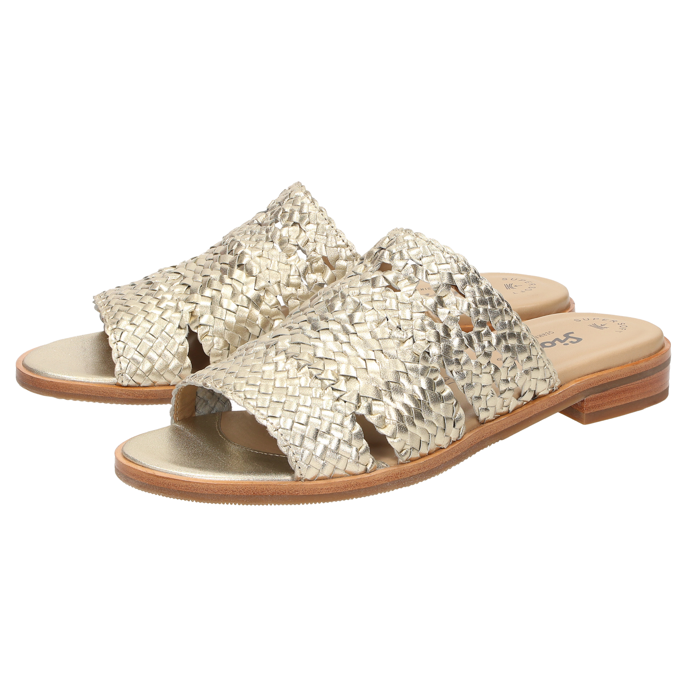Diese Sandale ist die perfekte Wahl für Ihre Sommeraktivitäten. Das Obermaterial aus hochwertigem Ziegenflechtleder in einem attraktiven Metallic-Finish verleiht dem Schuh eine elegante Optik und macht ihn zu einem stilvollen Begleiter. Dank der normalen Weite (G-Weite) bietet die Sandale optimalen Tragekomfort und passt sich angenehm an Ihren Fuß an.
