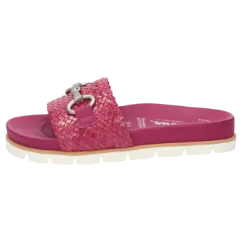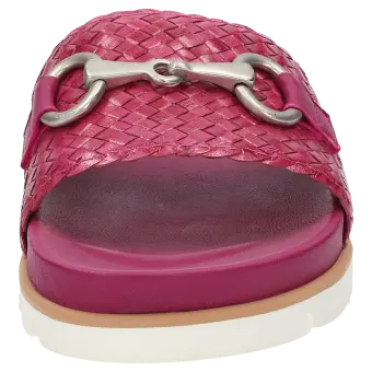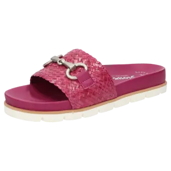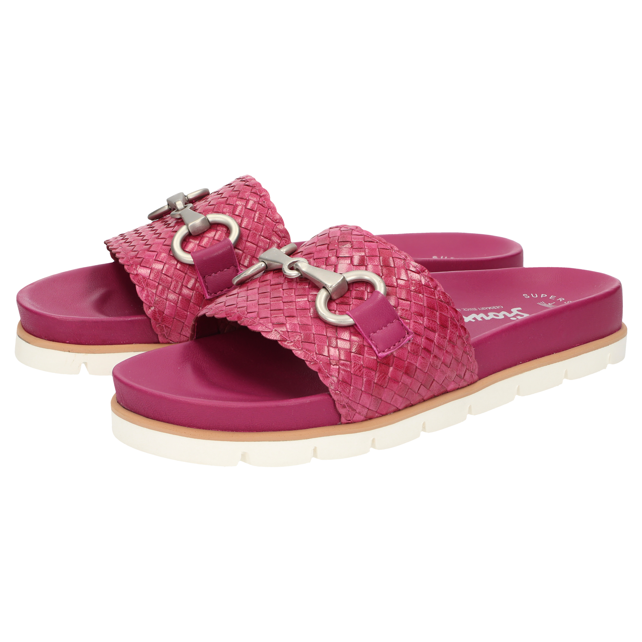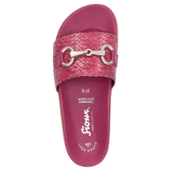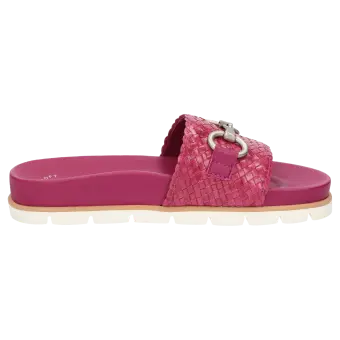 Pantolette mit modischer Trensen-Garnitur für den Hochsommer - aus Ziegenflechtleder handwerklich gefertigt. Das Fußbett ist aus Leder und die profilierte Sohle ist aus Leichtgummi und sorgt für ein geringes Schuhgewicht. Ideal für Freizeit, Urlaub und den Sommer!