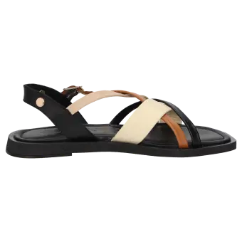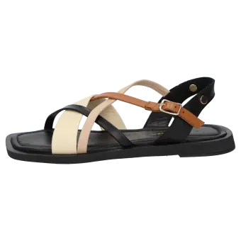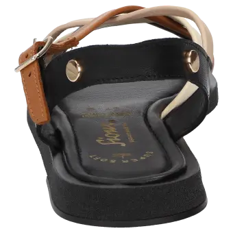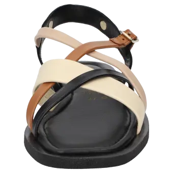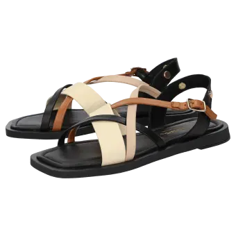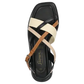 Moderne Sandale mit gekreuzten Riemen in schwarz, cognac und naturtönen - ein eleganter Mix, der modischen Anspruch mit bewährtem Sioux-Komfort verbindet. Die weich gepolsterte Innensohle sorgt für höchsten Tragekomfort - der ideale Begleiter für Stadtbummel und Urlaubsreisen.