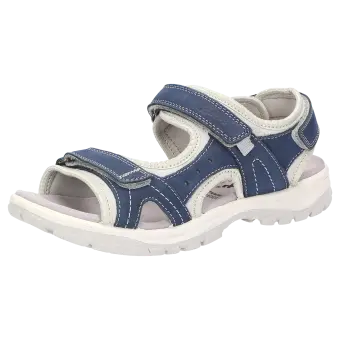 Sioux hat auch ansprechende Trekking-Sandalen für Frauen: Das markante Oberleder besteht aus Kalbnubuk, als Futter haben wir gepolstertes Neopren-Material verarbeitet. Das weiche Fußbett ergänzt sich optimal mit der weichen, profilierten Luftpolster-Laufsohle. Durch die Klettverschlüsse über den Vorfuß und über den Rist lässt sich die Sandale perfekt an den Fuß anpassen.