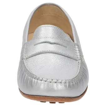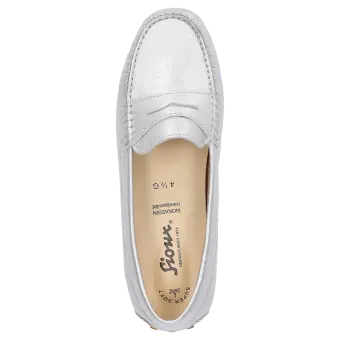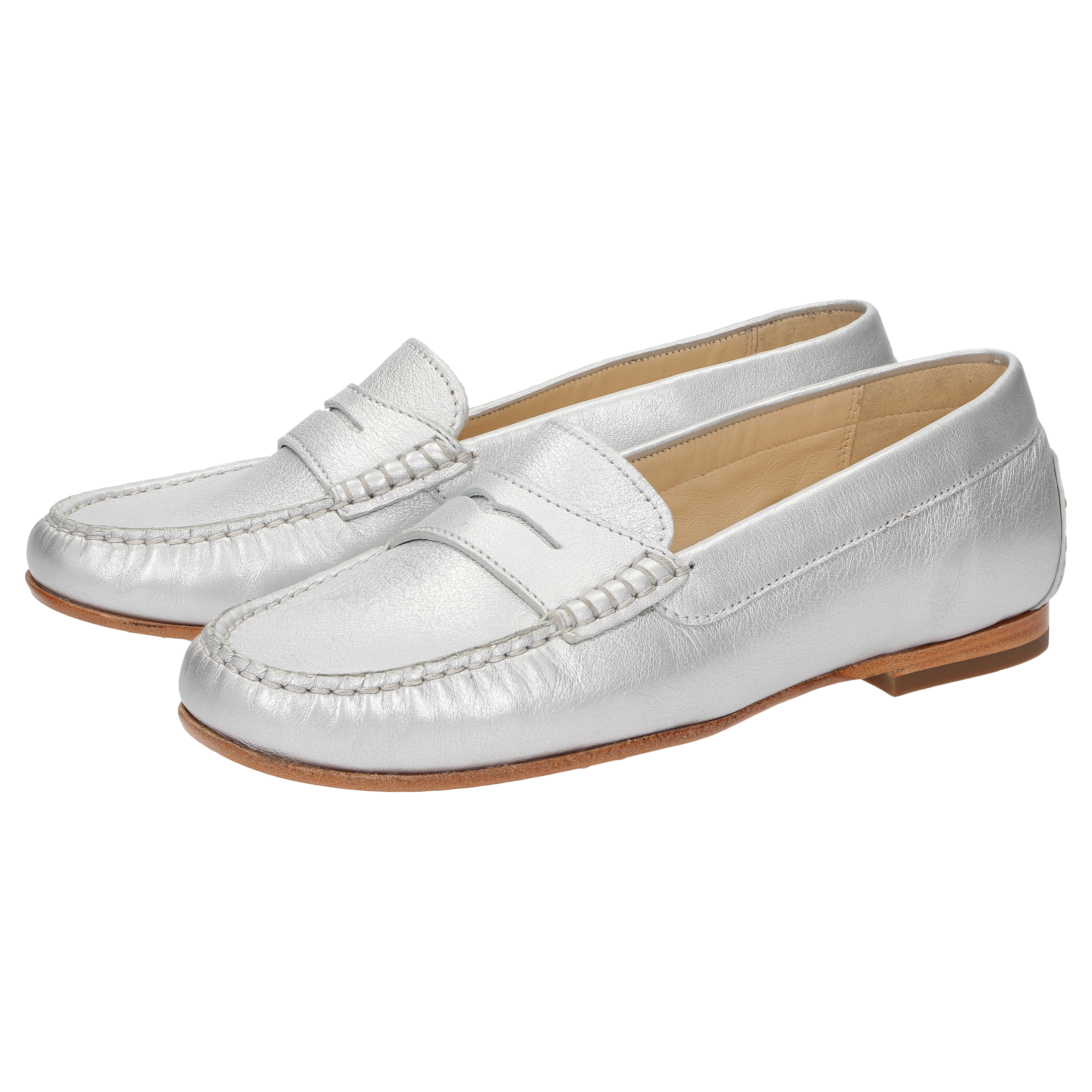Dieser Mokassin für Damen ist die perfekte Wahl für stilbewusste Kundinnen, die Wert auf Eleganz und Komfort legen. Das Obermaterial aus hochwertigem Lammleder in einem edlen Metallic-Look verleiht dem Schuh eine luxuriöse Ausstrahlung. Die normale Weite (G-Weite) bietet optimalen Tragekomfort und passt sich perfekt Ihrem Fuß an. Die Ledernoppensohle sorgt für Flexibilität und Stabilität bei jedem Schritt.
