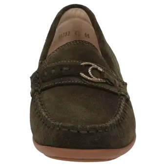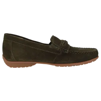 Dieser Slipper vereint stilvolle Mokassin-Optik mit komfortabler Alltagstauglichkeit. Das Obermaterial aus feinem Kalbvelour überzeugt durch seine samtige Oberfläche und bietet ein angenehmes Tragegefühl. Dank der H-Weite verfügt der Schuh über eine großzügige Passform, wodurch besonders Personen mit einem breiteren Fuß mehr Komfort und Bewegungsfreiheit erleben. Die flexible Gummisohle sorgt für einen sicheren Halt und unterstützt ein entspanntes Laufgefühl - ideal für lange Tage unterwegs. Im Inneren überzeugt der Mokassin durch hohe Verarbeitungsqualität sowie ein weiches Material, das sich sanft dem Fuß anpasst. Dieser Slipper ist die richtige Wahl für alle, die Wert auf Bequemlichkeit und einen eleganten Look legen. Die Kombination aus klassischem Design, hochwertigem Velour und flexibler Laufsohle macht dieses Modell zu einem verlässlichen Begleiter im Alltag.