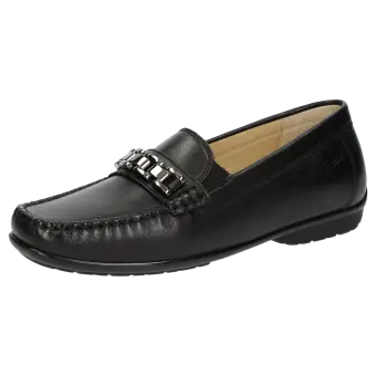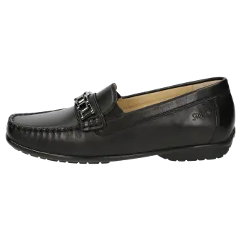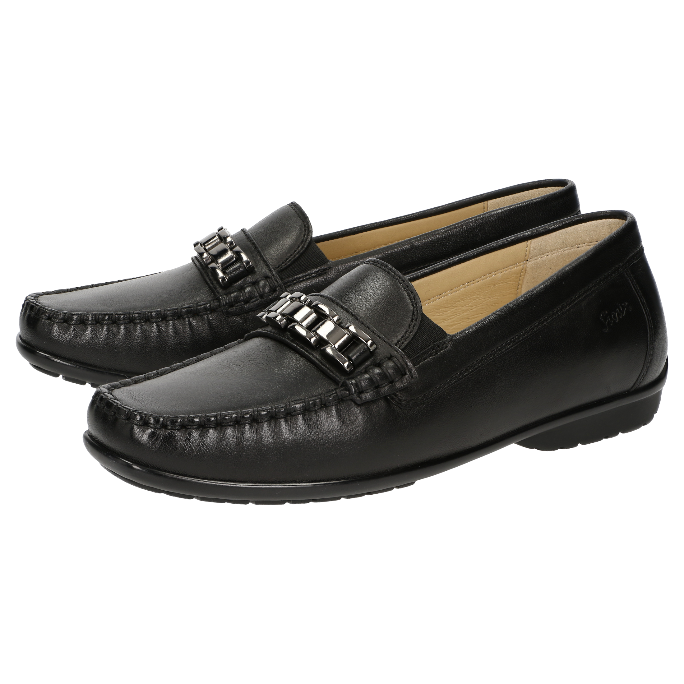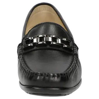 Märchenhaft bequemer Damen-Mokassin-Slipper mit modischer Metall-Garnitur aus sehr feinem Ziegenvelour - in Schuhweite H für vollere Füße, in optimaler Passform und zeitloser Eleganz. Innen ausgestattet mit Lederfutter und weich gepolsterter, durchgehender Leder-Decksohle - auch geeignet zum Austausch mit der eigenen Einlage. Weiche und feine Gummisohle mit flachem Absatz. Ein typischer Damen-Mokassin von Sioux: seit Jahren ein gerne gekauftes Modell.