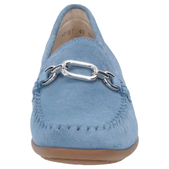 Dieser Slipper überzeugt mit einer eleganten, klassischen Optik und hochwertigem Kalbvelour, das angenehm weich auf der Haut liegt. Die flexible Gummisohle sorgt für optimalen Halt und unterstützt einen bequemen Auftritt im Alltag. Durch die Extraweite H bietet dieser Schuh mehr Platz als herkömmliche Modelle und ist ideal für modebewusste Personen mit breiteren Füßen, die Wert auf Komfort und Stil legen. Im Inneren punktet der Slipper mit einer sorgfältigen Verarbeitung und einem passgenauen Sitz, wodurch sich der Schuh auch über längere Zeit angenehm tragen lässt. Das feine Velourmaterial unterstreicht die edle Ausstrahlung und ergänzt sowohl lässige als auch elegante Outfits. Dieser Slipper - die perfekte Wahl für alle, die sich ein Plus an Komfort und zeitlose Eleganz wünschen.