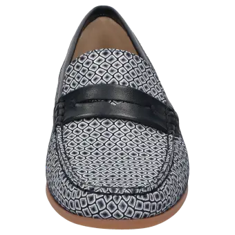 Dieser Slipper ist die ideale Wahl für Damen, die Wert auf stilvolle Optik und ein angenehmes Tragegefühl legen. Das Obermaterial besteht aus einer feinen Lederkombination, die dem Schuh nicht nur eine elegante Ausstrahlung verleiht, sondern auch langlebig und geschmeidig ist. Die schmale Passform (F-Weite) sorgt für eine perfekte Anpassung an den Fuß und ist besonders für schlanke Füße geeignet. Dank der flexiblen Gummisohle bietet der Mokassin sicheren Halt und unterstützt ein leichtes, entspanntes Gehen - perfekt für den Alltag. Im Inneren überzeugt der Slipper mit einem praktischen Wechselfußbett, das es ermöglicht, eigene Einlagen nach Bedarf einzusetzen und so den Komfort individuell zu gestalten. Die hochwertige Verarbeitung und die Materialauswahl machen diesen Mokassin zu einem zuverlässigen Begleiter für jede Gelegenheit. Wer Bequemlichkeit mit zeitlosem Stil verbinden möchte, trifft mit diesem Schuh die richtige Entscheidung.