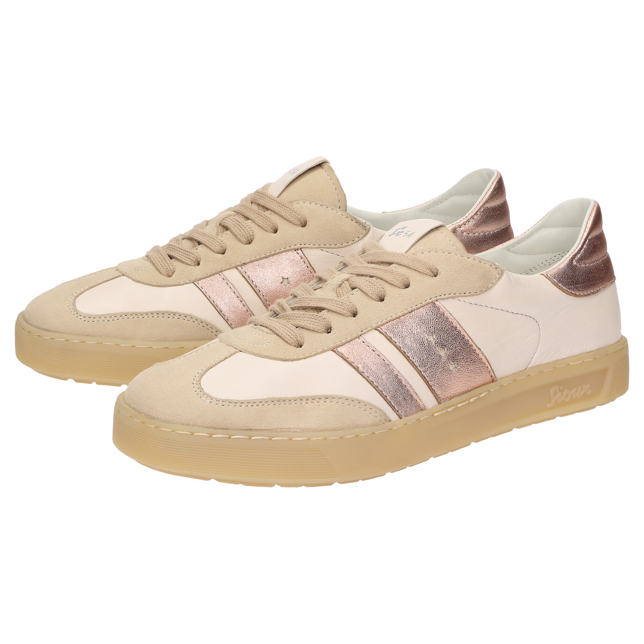 Dieser Sneaker ist die perfekte Wahl für modebewusste Damen, die Wert auf Stil und Komfort legen. Das Obermaterial besteht aus einer eleganten Kombination aus Ziegenvelour, Lammnappa und Lammleder in einem ansprechenden Metallic-Finish. Die normale Weite (G-Weite) sorgt für einen optimalen Tragekomfort und macht den Schuh zu einem vielseitigen Begleiter für Ihre Freizeitaktivitäten.