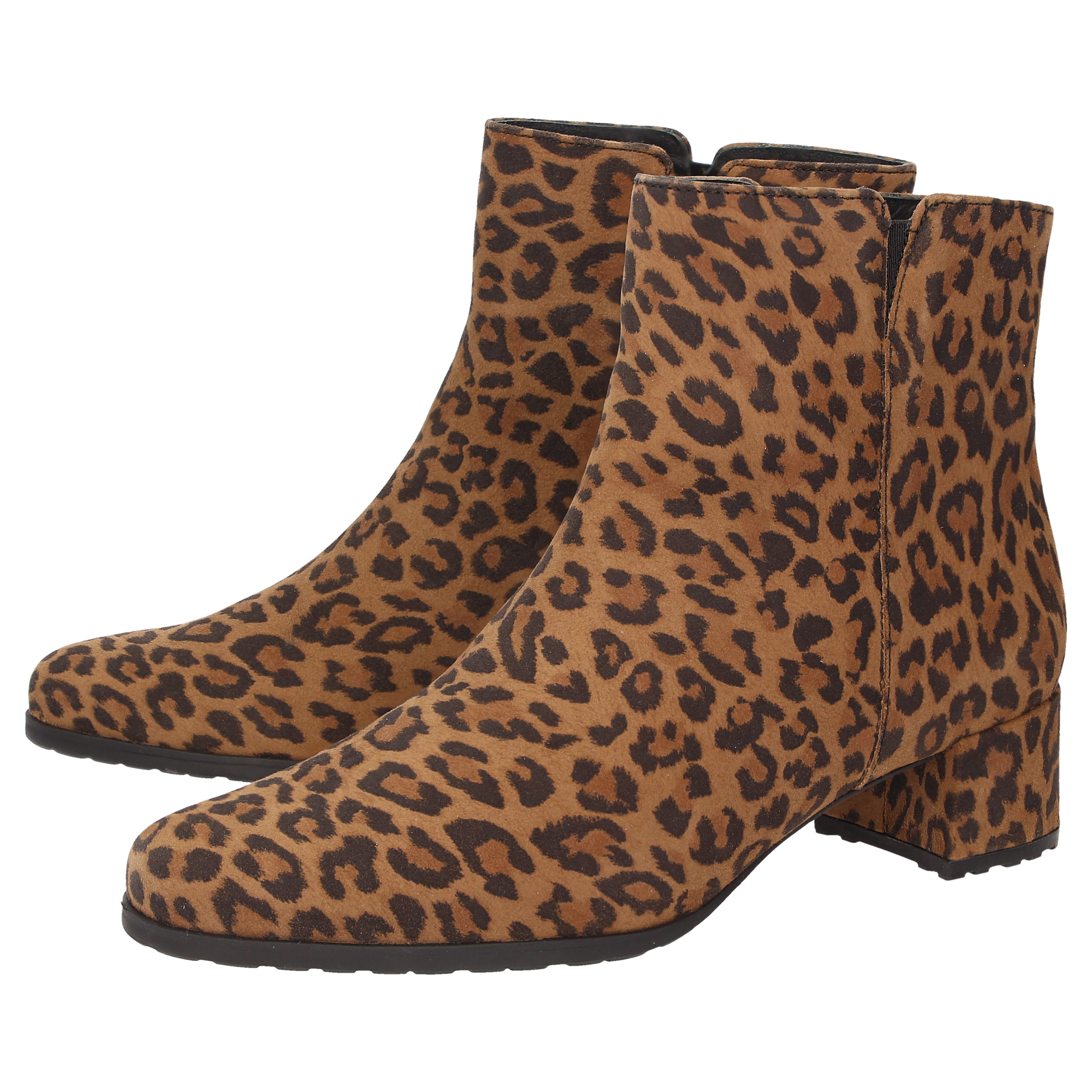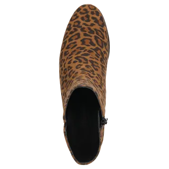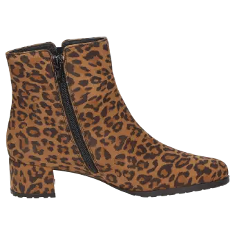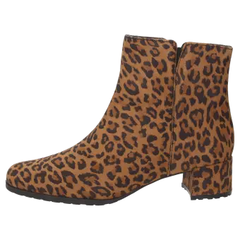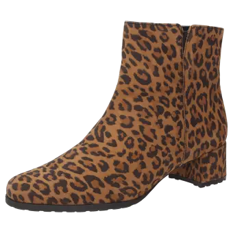 Diese Stiefelette ist die perfekte Wahl für stilbewusste City-Looks. Das Obermaterial aus feinem Ziegenveloursleder mit modischem Leoprint verleiht diesem Schuh eine besondere Optik und macht ihn zu einem echten Hingucker. Dank der normalen Weite (G-Weite) bietet die Stiefelette optimalen Tragekomfort und passt sich angenehm an den Fuß an. Die robuste Gummisohle sorgt für sicheren Halt und macht den Schuh zum idealen Begleiter für den Alltag.