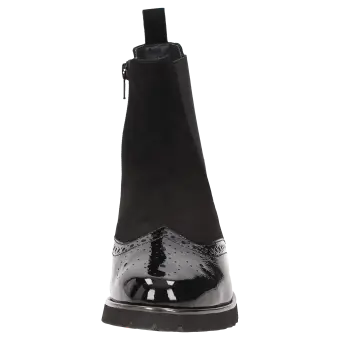 Diese Stiefelette ist die ideale Wahl für alle, die Wert auf Komfort und Stil legen. Das Obermaterial besteht aus einer hochwertigen Lederkombination, die einen eleganten Look und eine angenehme Haptik bietet. Dank der H-Weite bietet dieser Schuh mehr Platz und ist somit ideal für Personen mit breiteren Füßen. Der praktische Gummizug erleichtert das An- und Ausziehen, während die flexible Gummisohle für sicheren Halt sorgt.